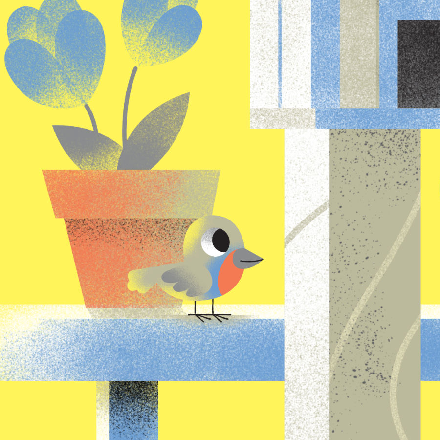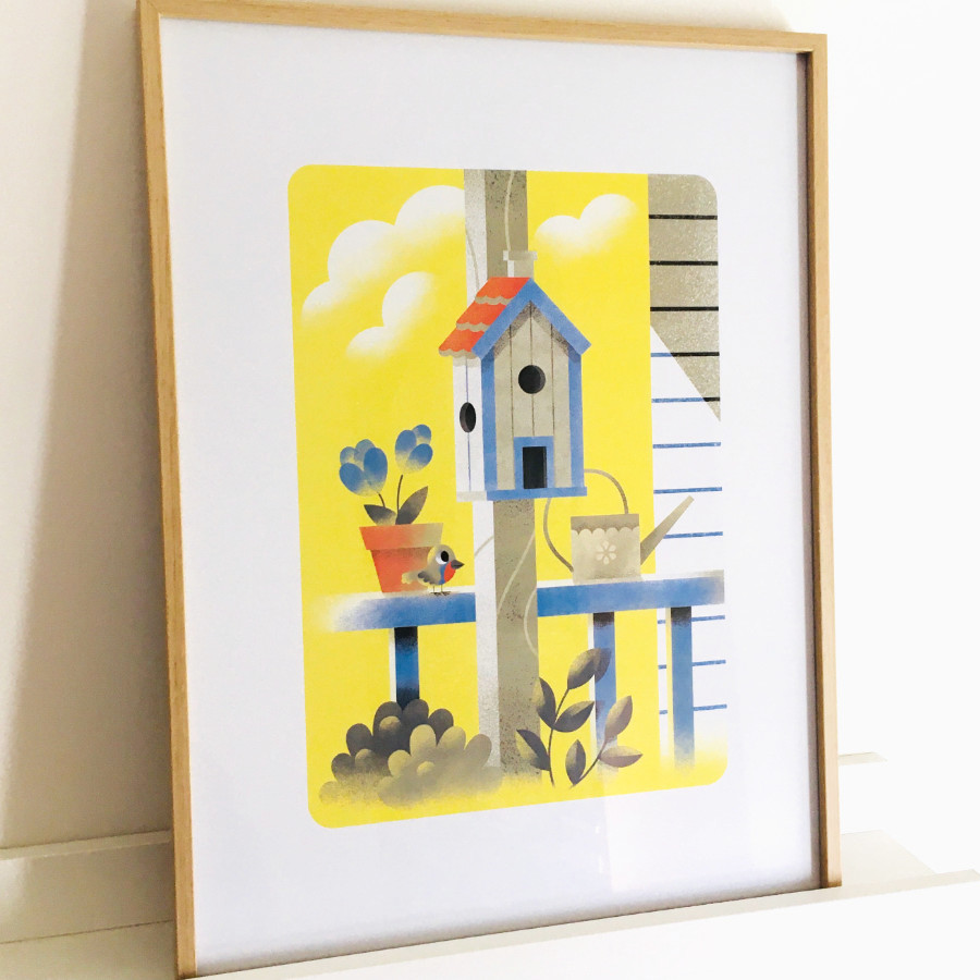 Le matin près du nichoirIllustration, impression numérique. Format 19,8X28cm.Dimensions de l’impression encadrée 30X40cm.